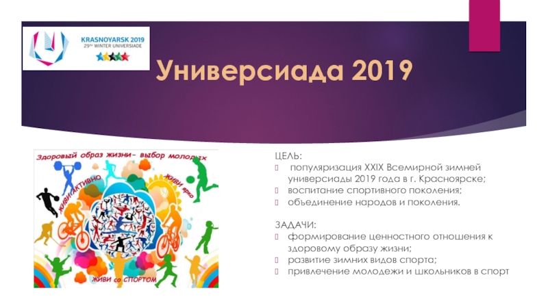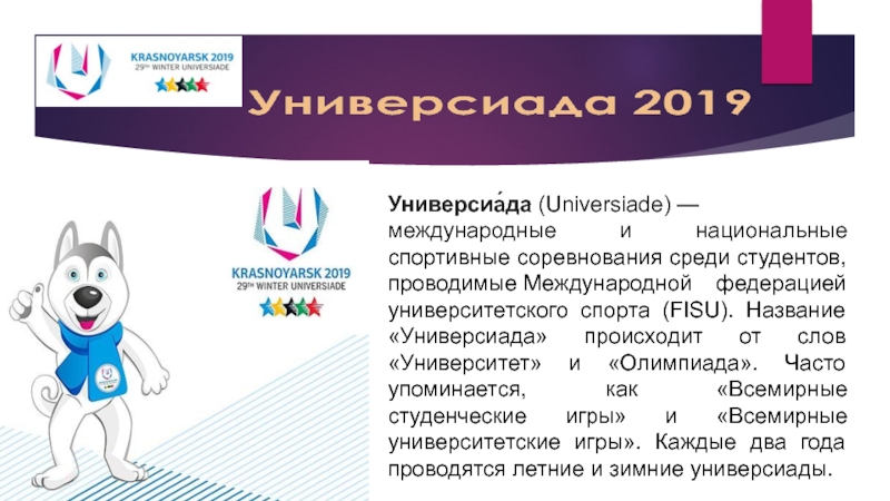 Слайд 3Универсиа́да (Universiade) — международные и национальные спортивные соревнования среди студентов, проводимые Международной федерацией университетского