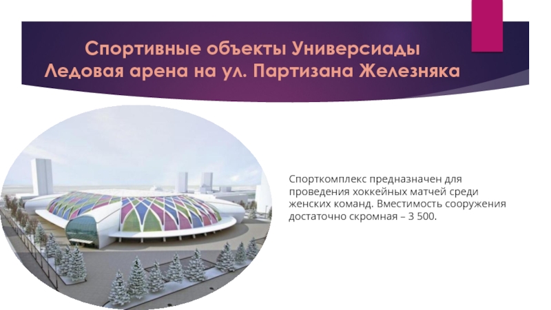 хоккейных матчей среди женских команд. Вместимость сооружения достаточно скромная – 3 500.