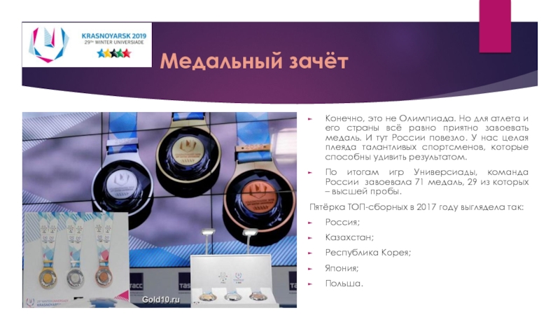 По итогам игр Универсиады, команда России завоевала 71 медаль, 29 из которых – высшей пробы.