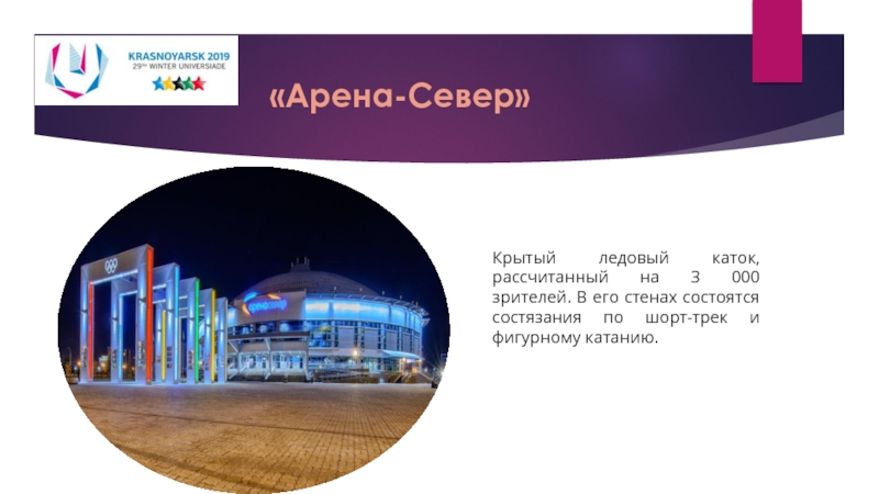 Главное спортивное сооружение Всемирной зимней Универсиады 2019 года. На территории арены состоятся церемонии открытия и закрытия, а также хоккейные игры среди мужчин. Объект будет открыт в 2018 году.