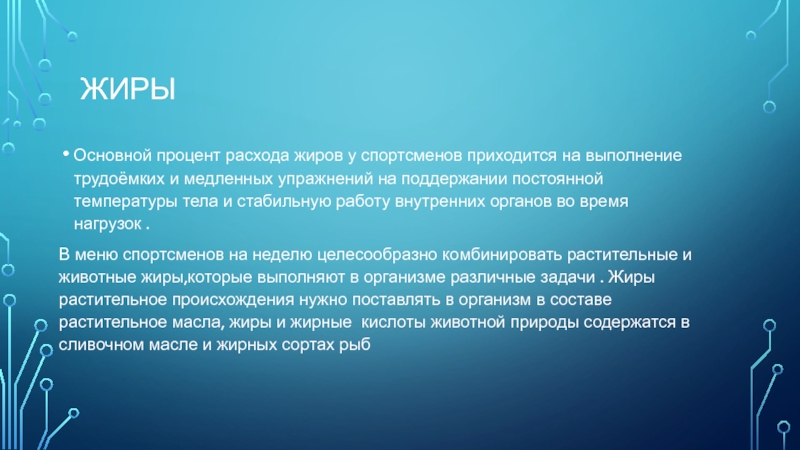 Основной процент расхода жиров у спортсменов приходится на выполнение трудоёмких и