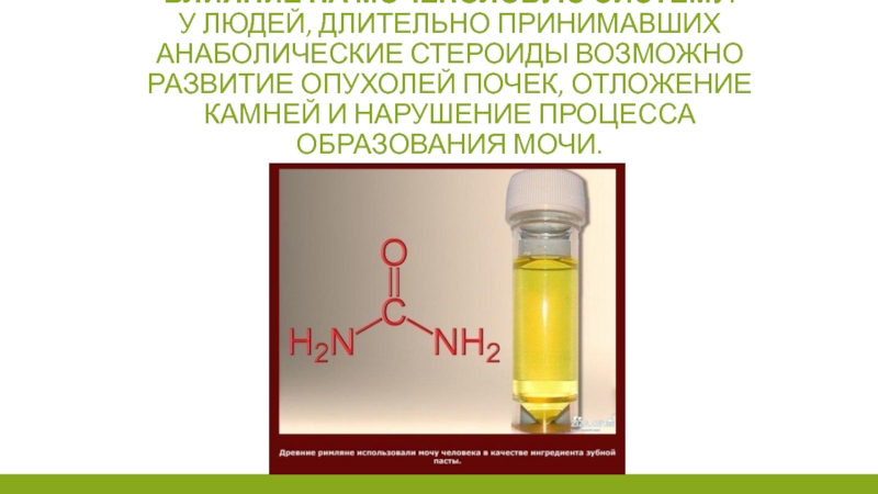 Слайд 23ПОСЛЕДСТВИЯ ДЛИТЕЛЬНОГО ПРИЕМА АНАБОЛИЧЕСКИХ СТЕРОИДОВ НА РАЗЛИЧНЫЕ ОРГАНЫ И СИСТЕМЫ ОРГАНИЗМА