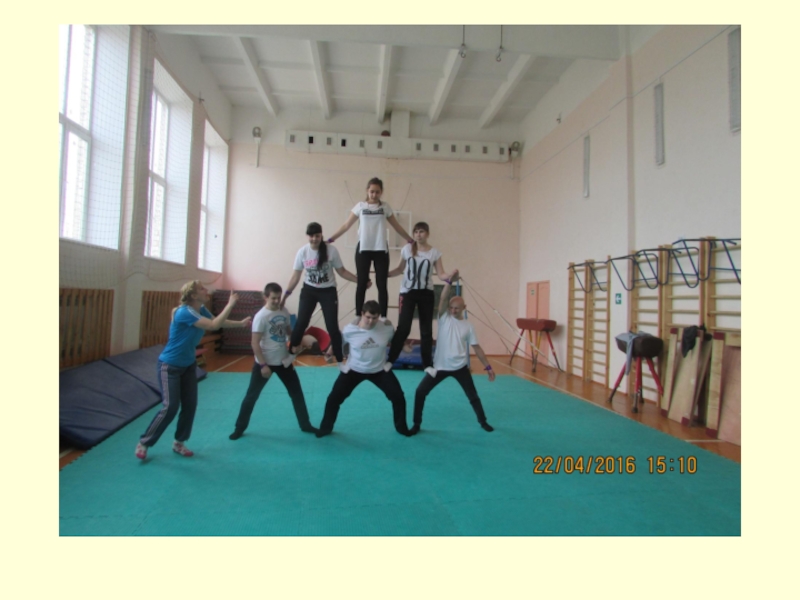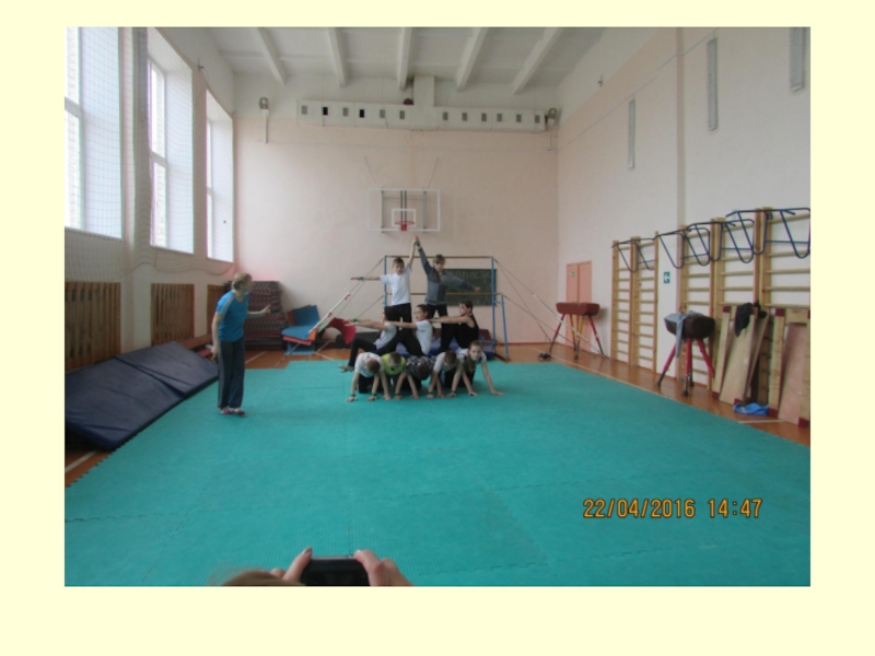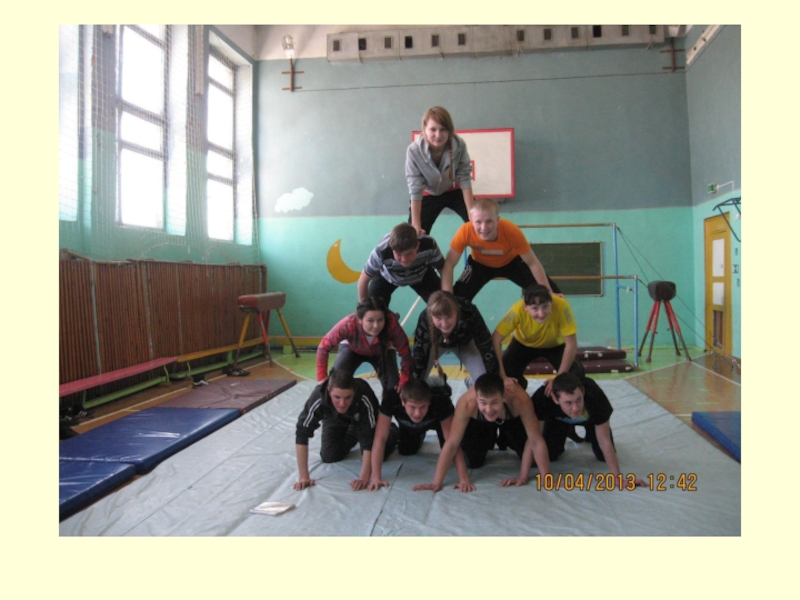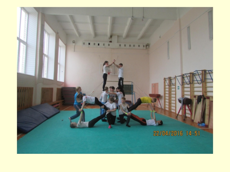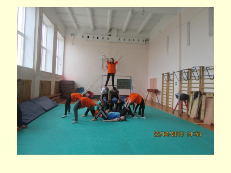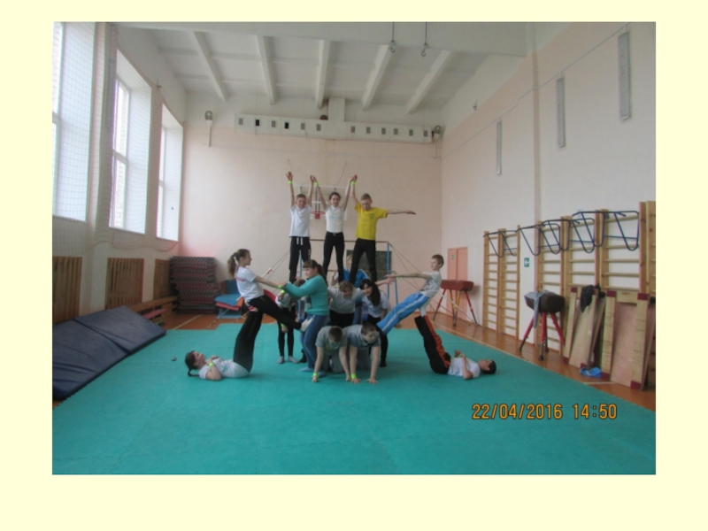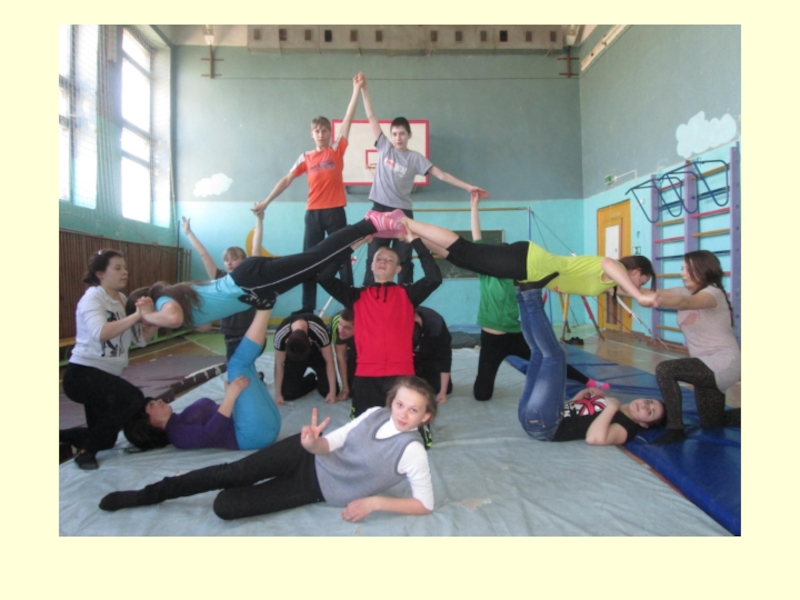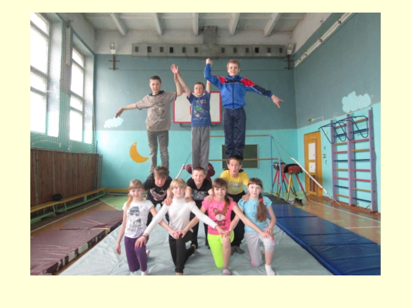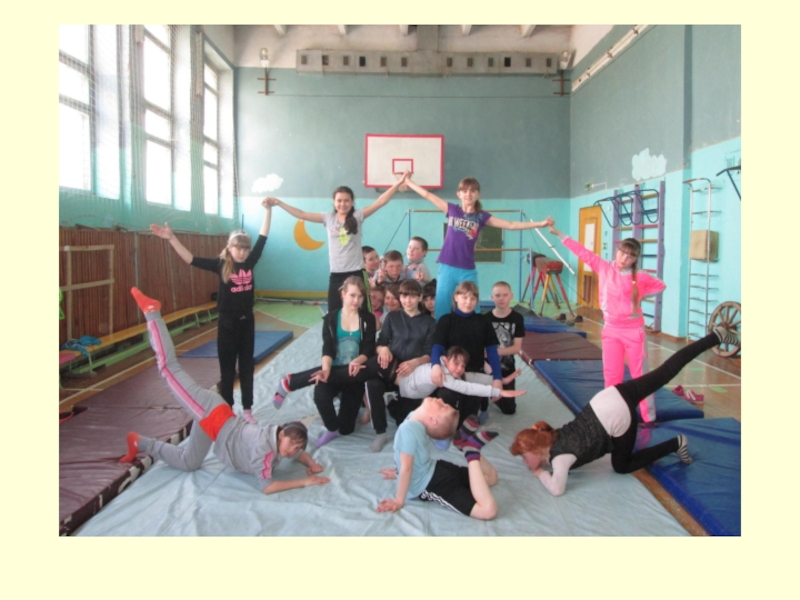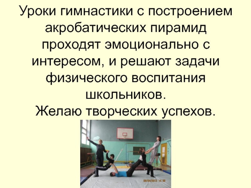 Слайд 29Уроки гимнастики с построением акробатических пирамид проходят эмоционально с интересом, и