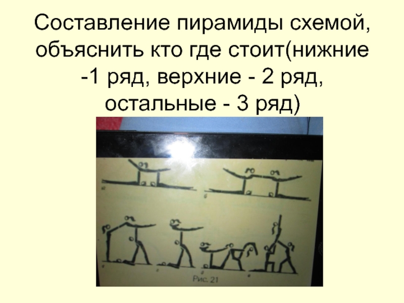Слайд 7Составление пирамиды схемой, объяснить кто где стоит(нижние -1 ряд, верхние -