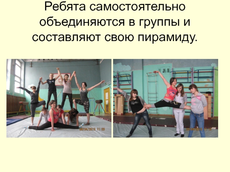 Слайд 6Ребята самостоятельно объединяются в группы и составляют свою пирамиду.