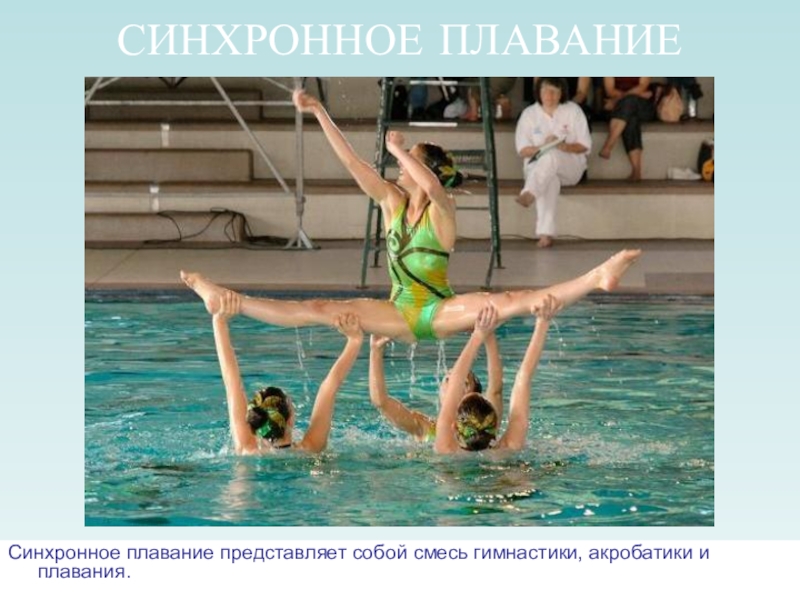 СИНХРОННОЕ ПЛАВАНИЕСинхронное плавание представляет собой смесь гимнастики, акробатики и плавания.