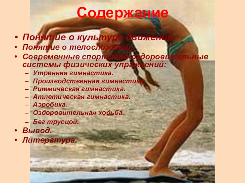Современные спортивно-оздоровительные системы физических упражнений по формированию культуры движений и телосложения.