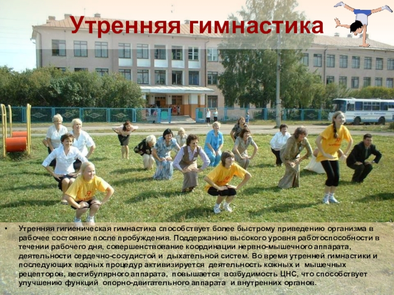 Утренняя гигиеническая гимнастика способствует более быстрому приведению организма в рабочее