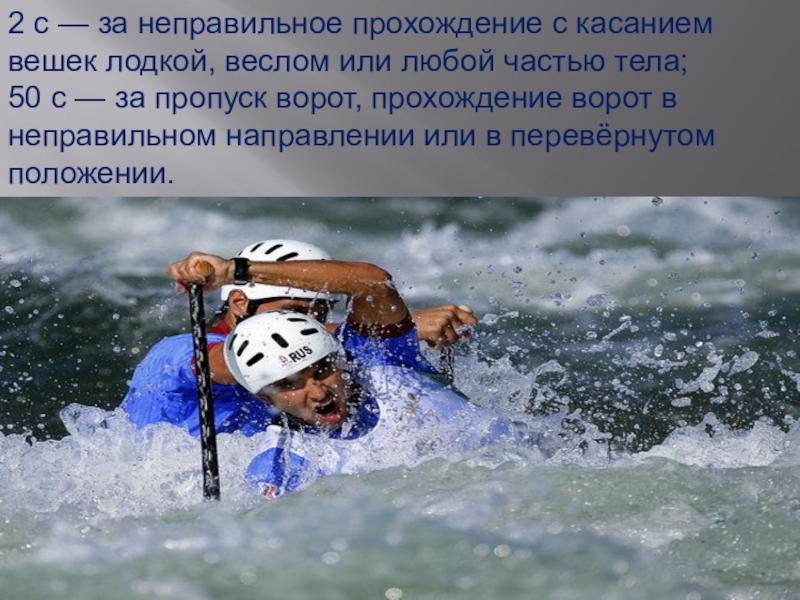 Слайд 72 с — за неправильное прохождение с касанием вешек лодкой, веслом или любой