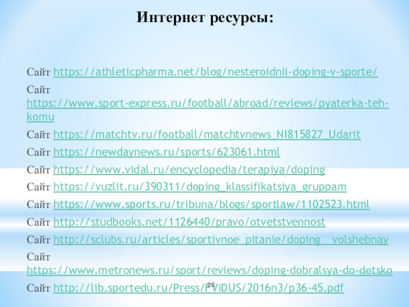 Сайт https://www.vidal.ru/encyclopedia/terapiya/doping