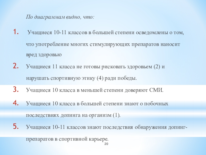 Учащиеся 10-11 классов знают последствия обнаружения допинг-препаратов в спортивной карьере.