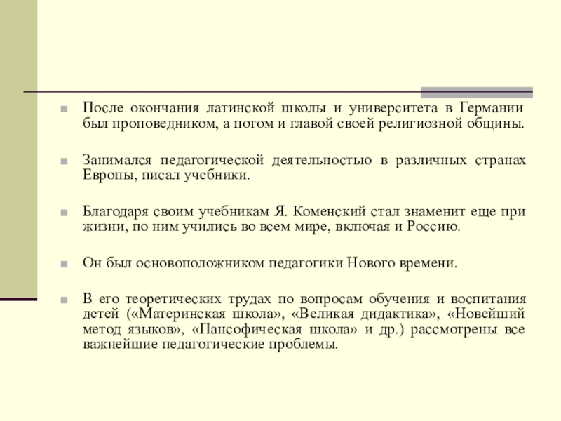 Он был основоположником педагогики Нового времени.