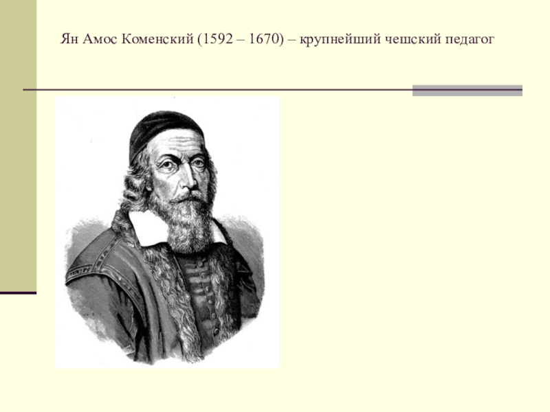 Слайд 32Ян Амос Коменский (1592 – 1670) – крупнейший чешский педагог