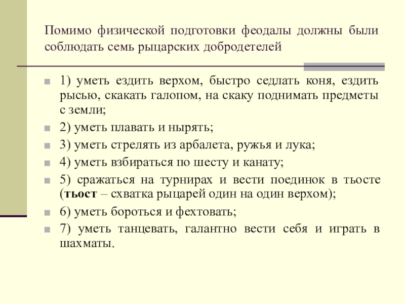 Слайд 8Помимо физической подготовки феодалы должны были