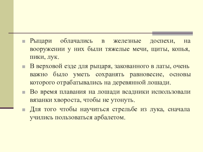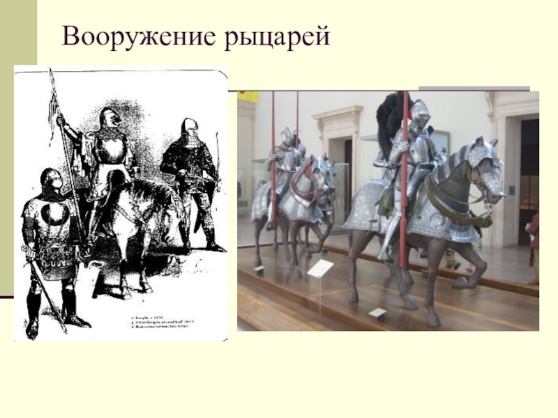 Рыцари облачались в железные доспехи, на вооружении у них были тяжелые