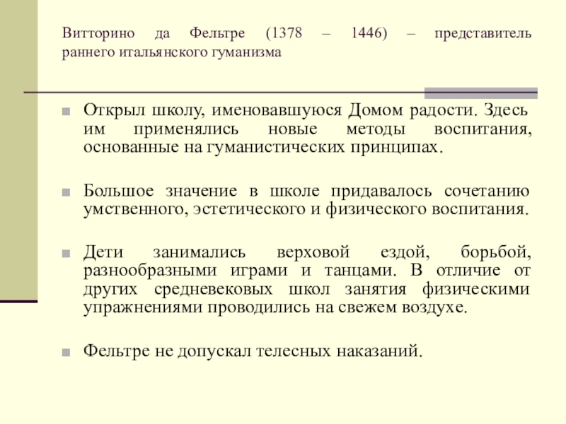 Фельтре не допускал телесных наказаний.