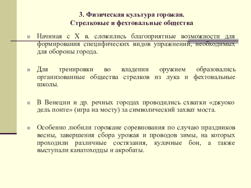 4. Физическая культура горожан. Стрелковые и фехтовальные общества.