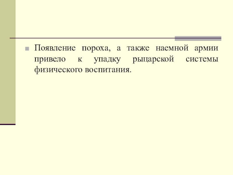 Появление пороха, а также наемной армии привело к упадку рыцарской системы