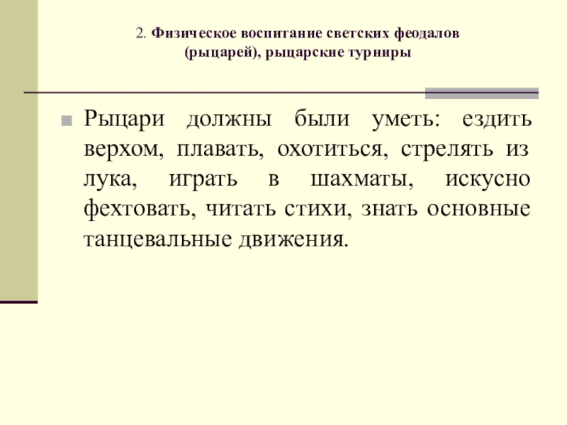Слайд 52. Физическое воспитание светских феодалов