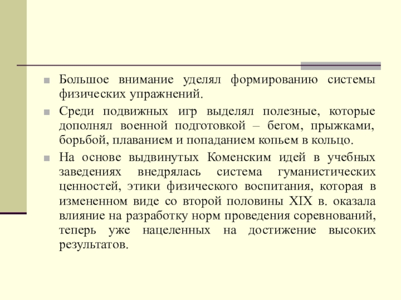 Я. Коменский пришел к пониманию необходимости развития физического воспитания.