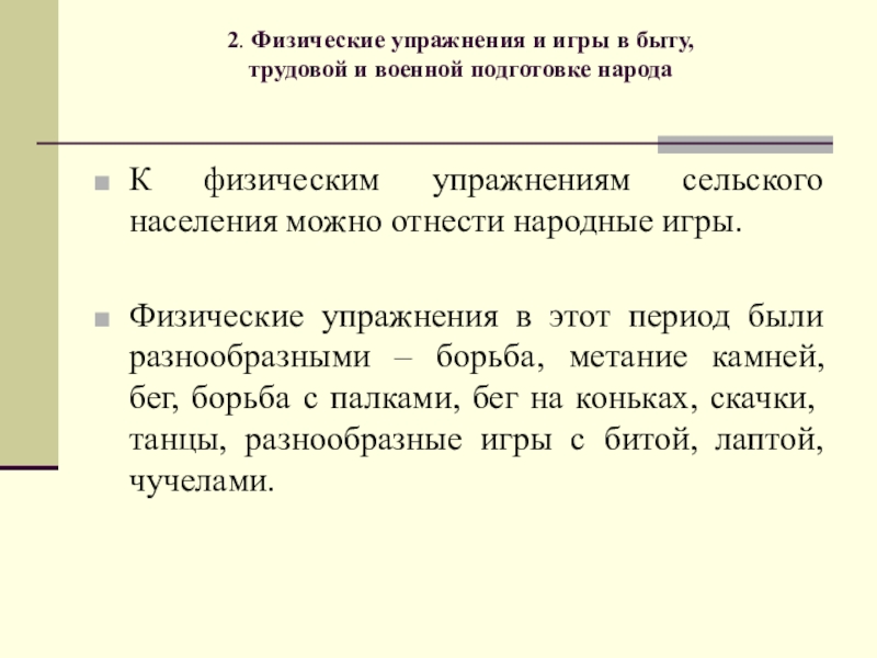 физическим упражнениям сельского населения можно отнести народные игры.