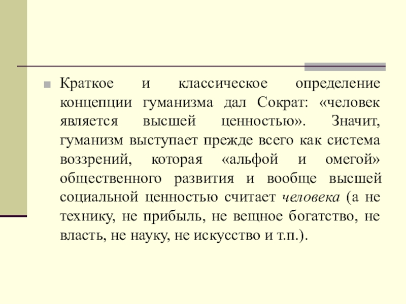Краткое и классическое определение концепции гуманизма дал Сократ: «человек является высшей