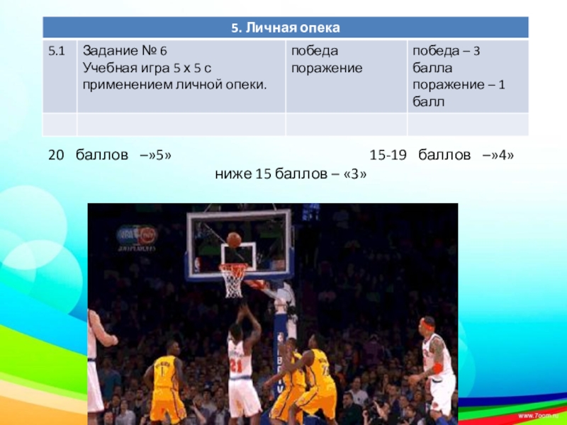 4. Воспитать у школьников интерес и желания к занятиям баскетболом, пропаганда здорового образа жизни; волевые качества; чувство ответственности, коллективизма; формирование адекватной самооценки.