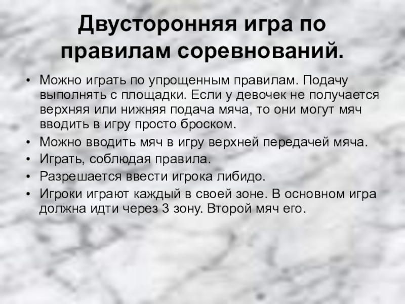 Слайд 1Волейбол. Двусторонняя игра по правилам.