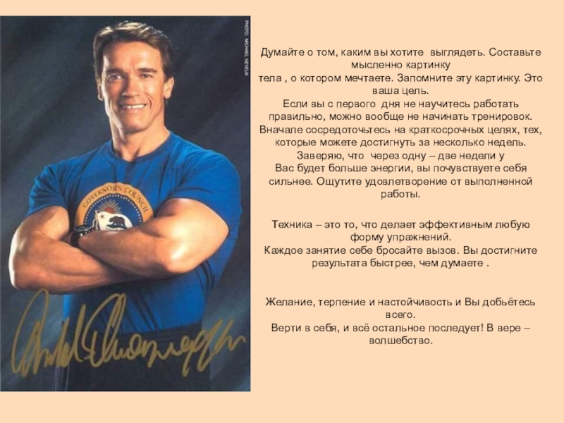 Слайд 19Думайте о том, каким вы хотите выглядеть. Составьте мысленно картинку