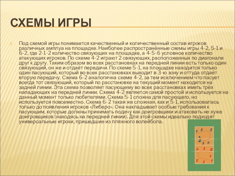 Под схемой игры понимается качественный и количественный состав игроков различных