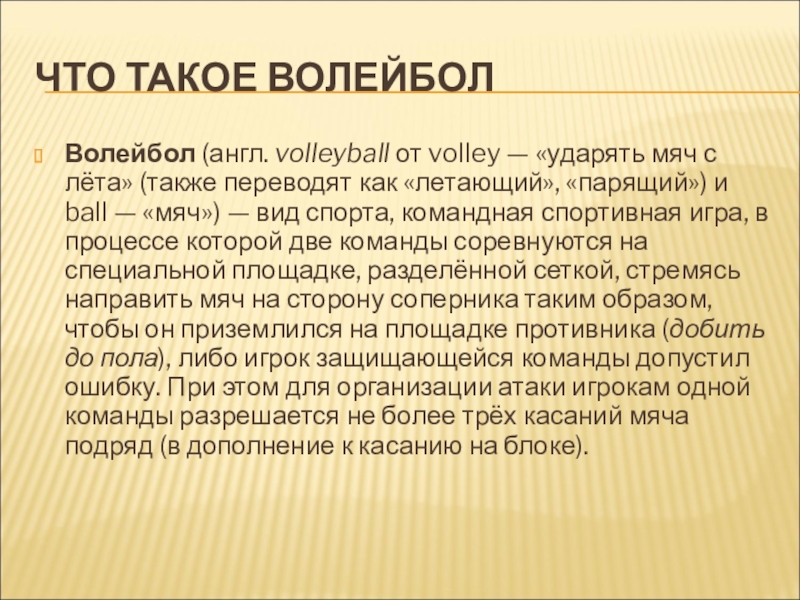 Слайд 2ЧТО ТАКОЕ ВОЛЕЙБОЛ