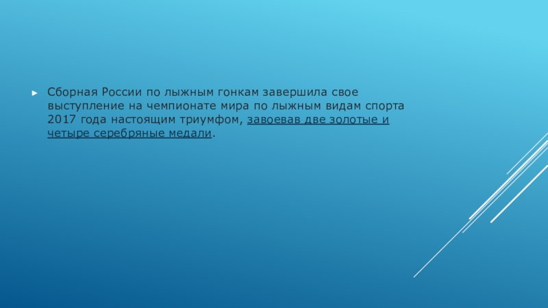 Слайд 5Сборная России по лыжным гонкам завершила свое выступление на чемпионате мира