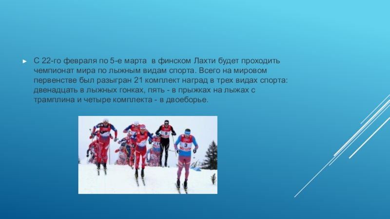 Слайд 2С 22-го февраля по 5-е марта в финском Лахти будет проходить