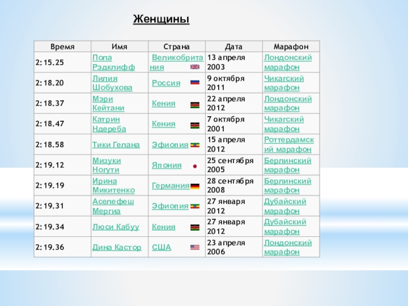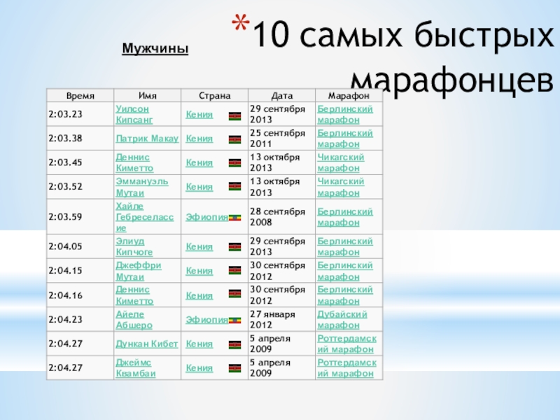 Слайд 1710 самых быстрых марафонцев