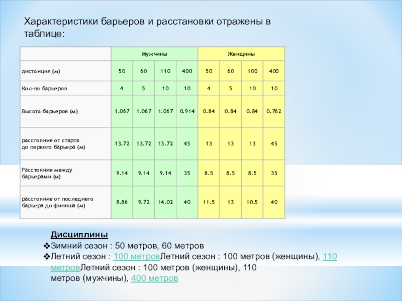 Слайд 20Характеристики барьеров и расстановки отражены в таблице: