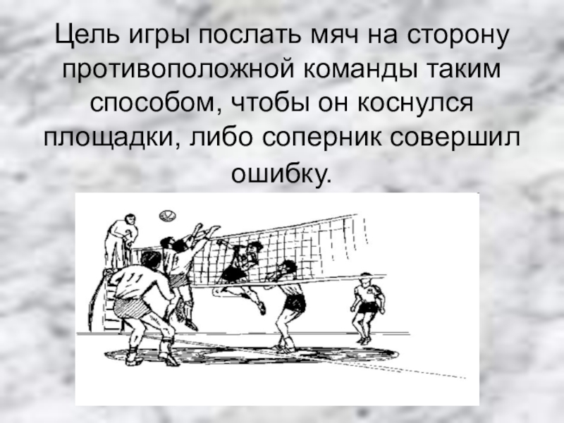 Цель игры послать мяч на сторону противоположной команды таким способом, чтобы