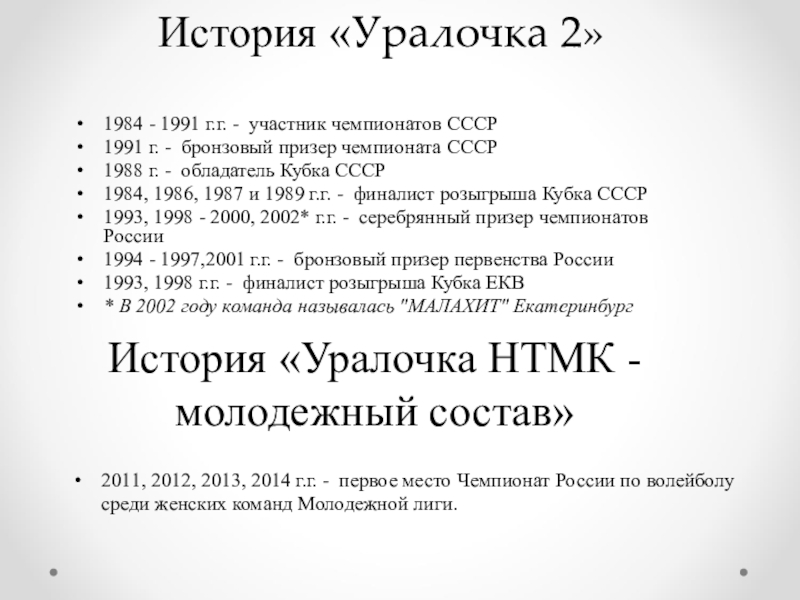 2011, 2012, 2013, 2014 г.г. - первое место Чемпионат России по волейболу среди женских команд Молодежной лиги.
