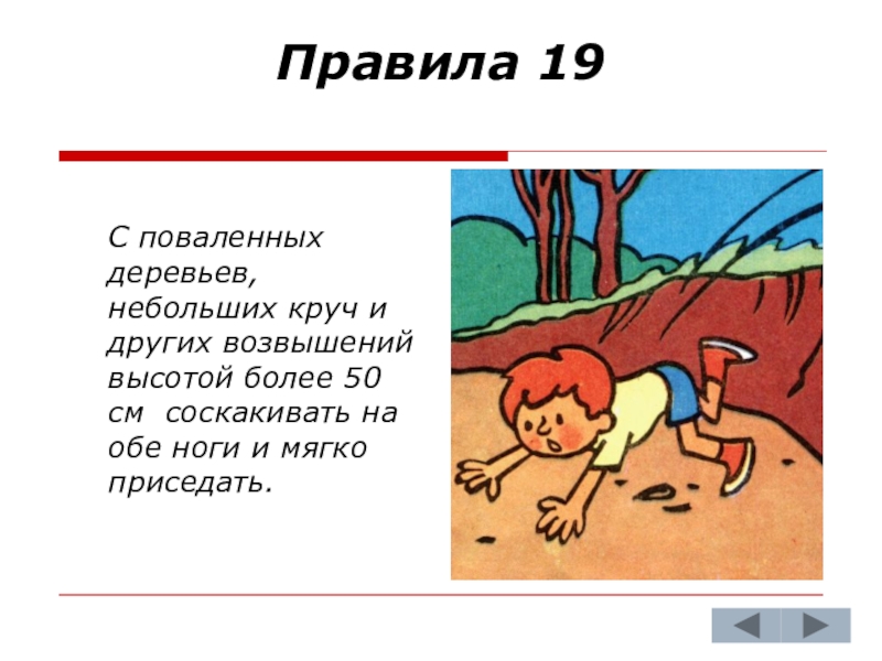 высотой более 50 см соскакивать на обе ноги и мягко приседать.