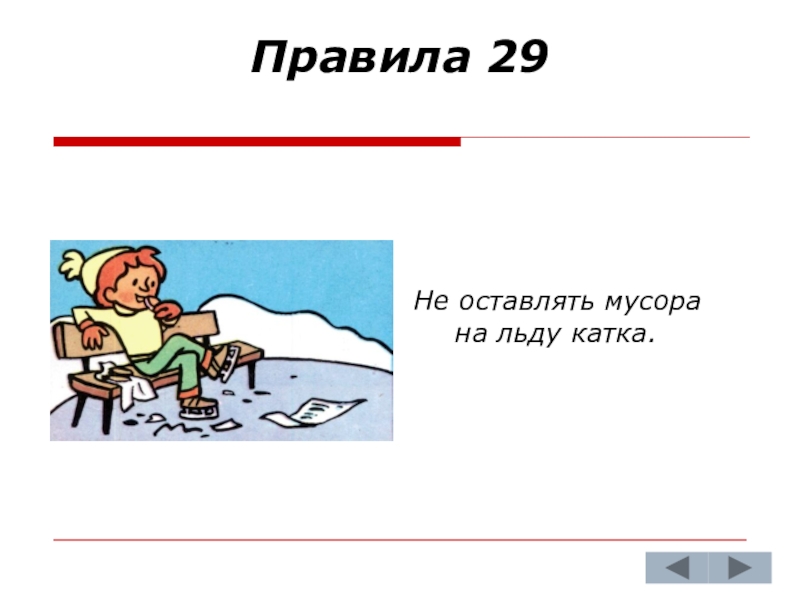 Не оставлять мусора на льду катка.