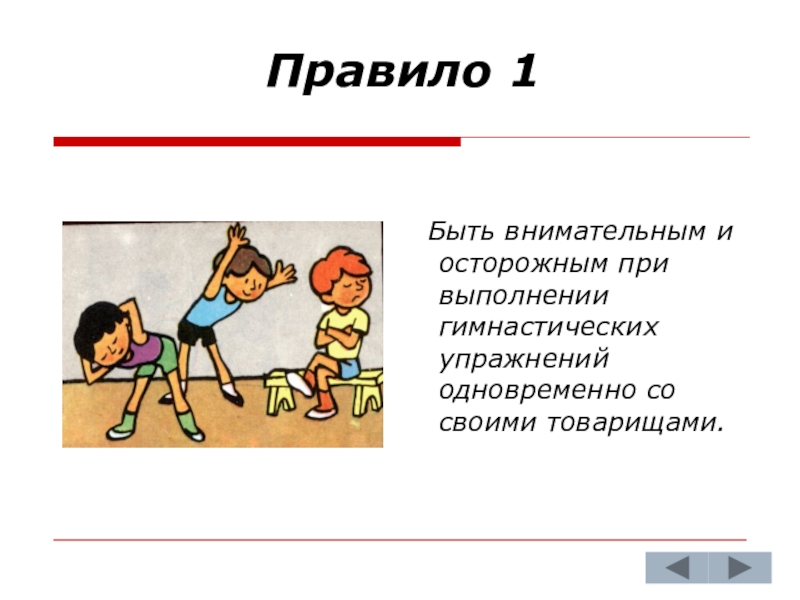 Быть осторожным при выполнении упражнений с гимнастической
