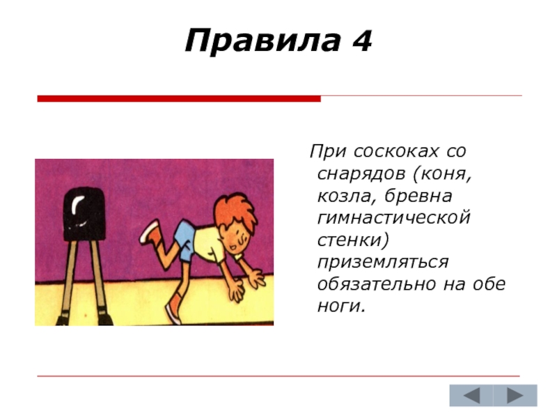 гимнастической стенки) приземляться обязательно на обе ноги.