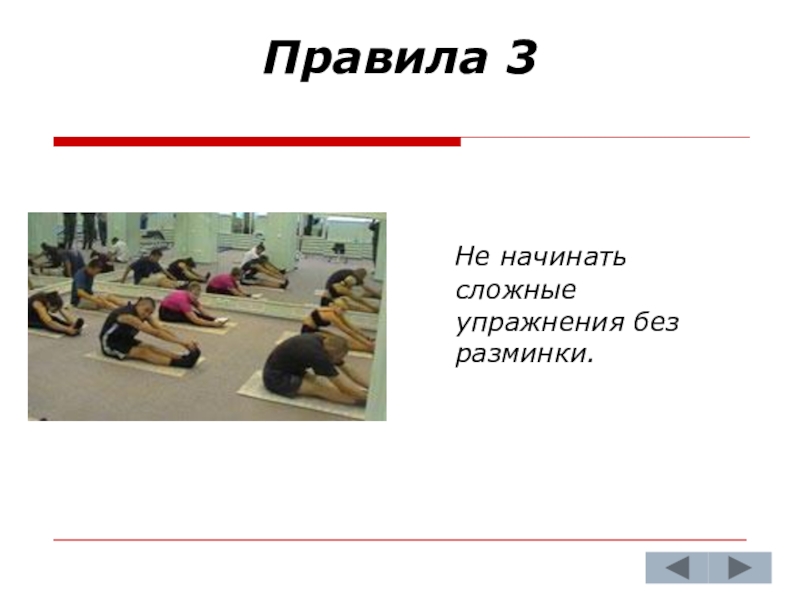 Не начинать сложные упражнения без разминки.
