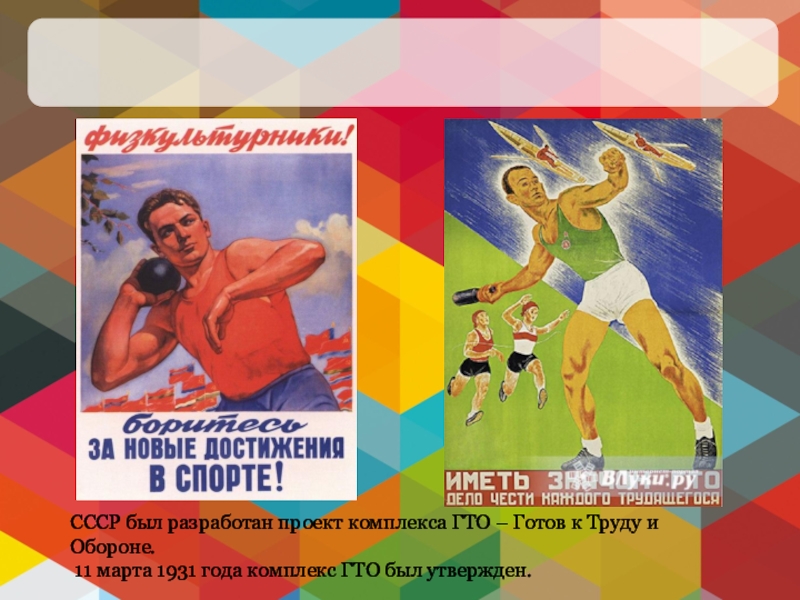 СССР был разработан проект комплекса ГТО – Готов к Труду и Обороне. 11 марта 1931 года комплекс