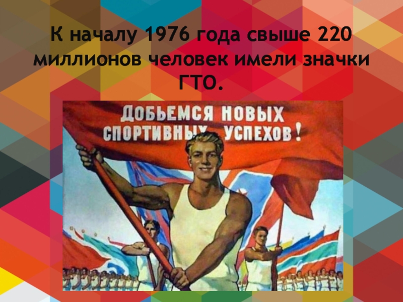 Слайд 9К началу 1976 года свыше 220 миллионов человек имели значки ГТО.