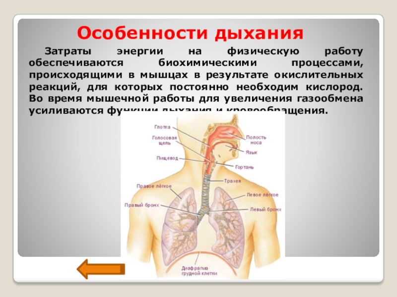 происходящими в мышцах в результате окислительных реакций, для которых постоянно необходим кислород. Во время мышечной работы для увеличения газообмена усиливаются функции дыхания и кровообращения.