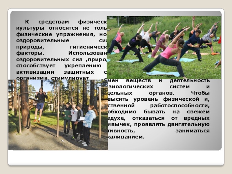 Слайд 8Средства физической культуры, обеспечивающие устойчивость к умственной и физической работоспособности