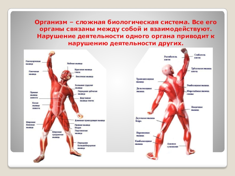 Слайд 5Организм – сложная биологическая система. Все его органы связаны между собой