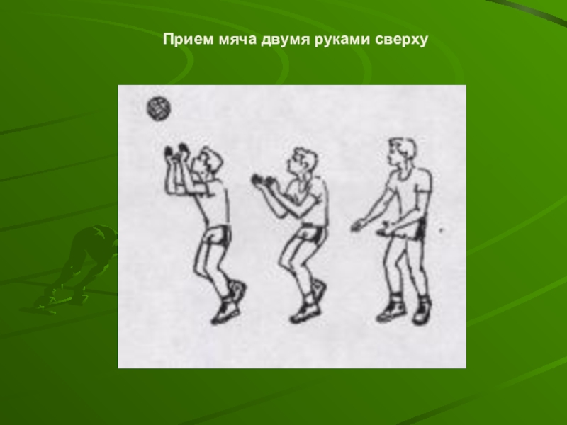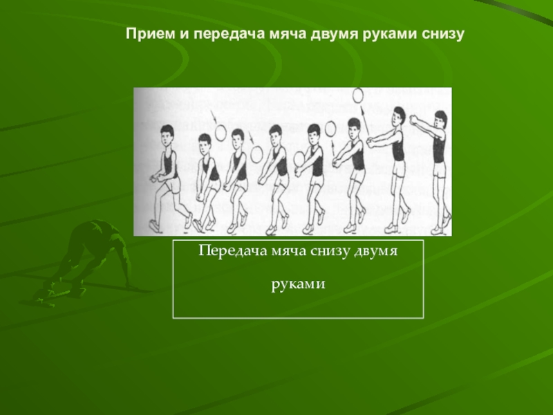 Слайд 21. Приема и передачи мяча снизу двумя руками