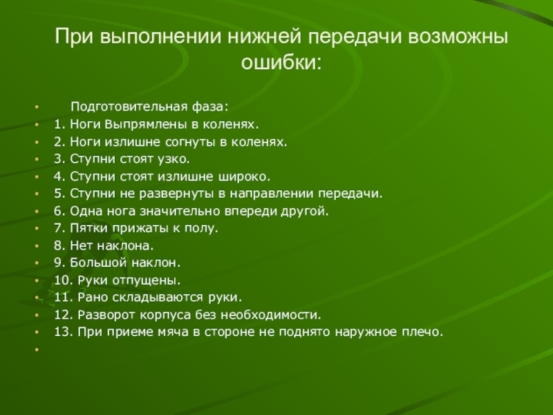 Слайд 8При выполнении нижней передачи возможны ошибки: