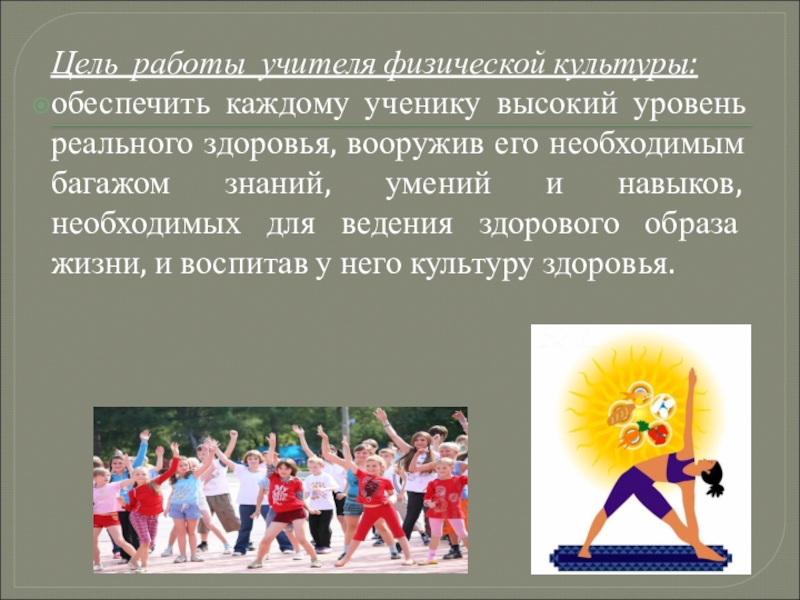 здоровья, вооружив его необходимым багажом знаний, умений и навыков, необходимых для ведения здорового образа жизни, и воспитав у него культуру здоровья.